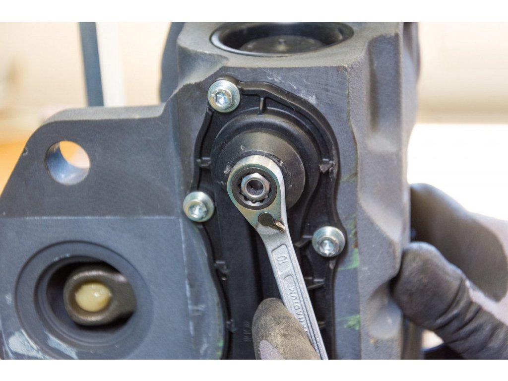 - Nastavení brzdového třmenu KNORR-BREMSE nástrčným klíčem.