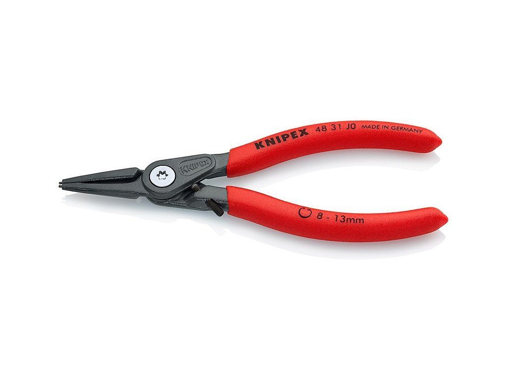 Vnitřní přímé kleště o délce 140 mm na pojistné kroužky od německého výrobce Knipex. Rukojeť potažena plastem, který brání sklouzávání. Snadná a bezpečná montáž díky přesně lícujícím, nasazeným a nalisovaným hrotům z vysoce zhuštěné pružinové oceli poskytují vysokou míru zabezpečení proti přetížení, např. při demontáži uvázlých těsnicích kroužků. Velké dosedací plochy a poloha hrotů znesnadňují odskočení kroužků. Hroty jsou při jednorázovém přetížení o 30 % stabilnější oproti běžným kleštím, současně umožňují lepší přístupnost při montáži. Při dynamickém zatížení vydrží hrot až 10 x déle.