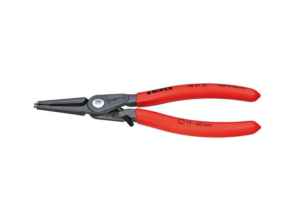 Vnitřní přímé kleště o délce 180 mm na pojistné kroužky od německého výrobce Knipex. Rukojeť potažena plastem, který brání sklouzávání. Snadná a bezpečná montáž díky přesně lícujícím, nasazeným a nalisovaným hrotům z vysoce zhuštěné pružinové oceli poskytují vysokou míru zabezpečení proti přetížení, např. při demontáži uvázlých těsnicích kroužků. Velké dosedací plochy a poloha hrotů znesnadňují odskočení kroužků. Hroty jsou při jednorázovém přetížení o 30 % stabilnější oproti běžným kleštím, současně umožňují lepší přístupnost při montáži. Při dynamickém zatížení vydrží hrot až 10 x déle.