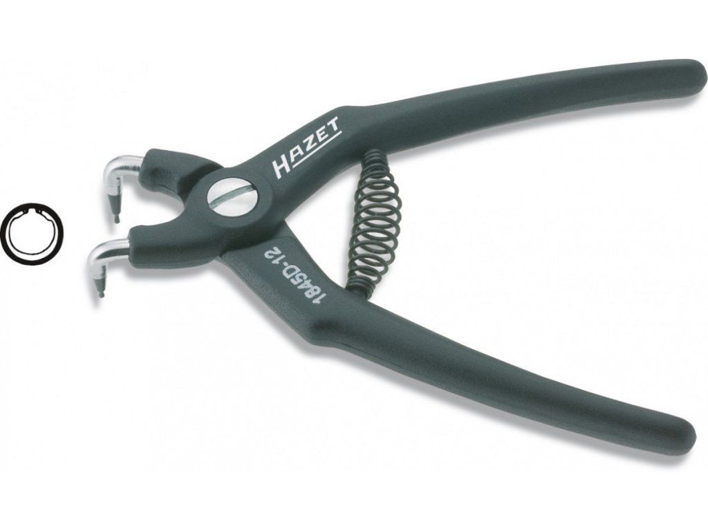 Vnitřní zahnuté kleště na pojistné kroužky. Hroty zahnuté o 90°. Délka 133 mm. Kleště s vratnou pružinou.