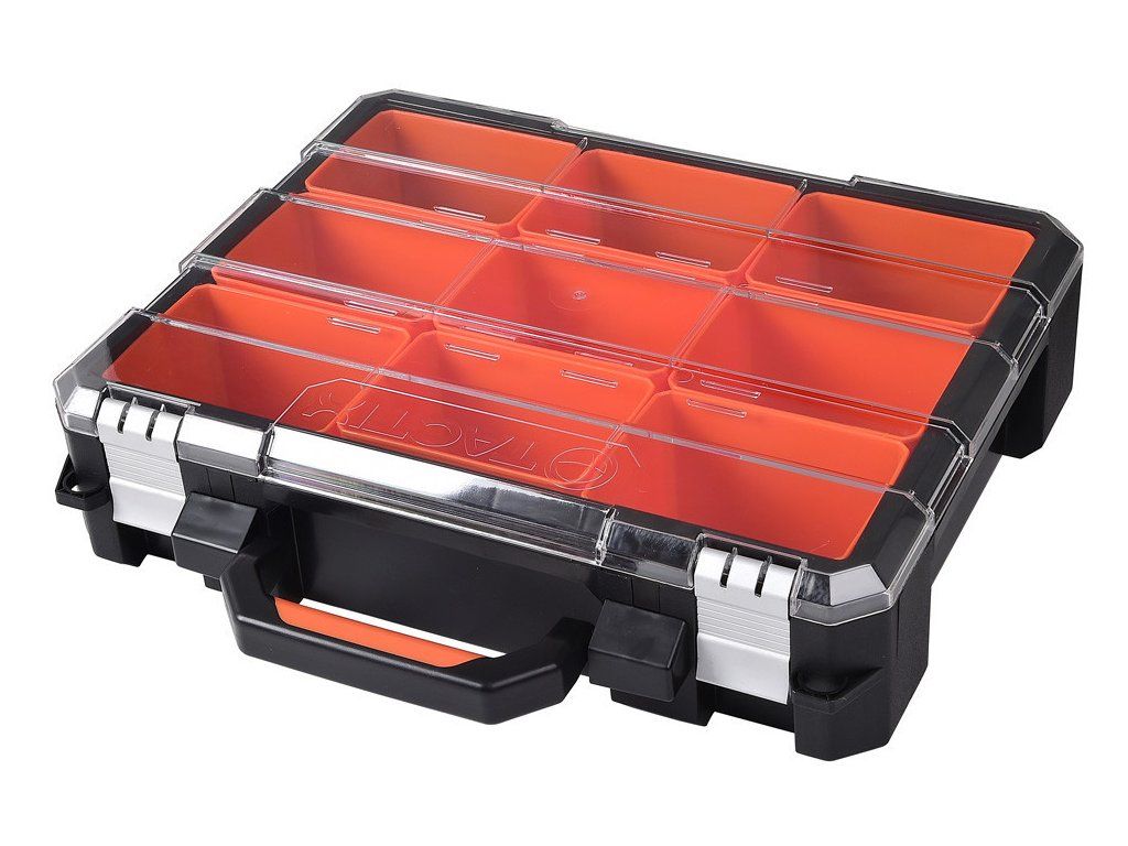 Vodotěsný organizér o rozměrech: 432 x 332 x 110 mm, vyrobeno z plastu, 9 vyndavacích boxíků, Tactix.