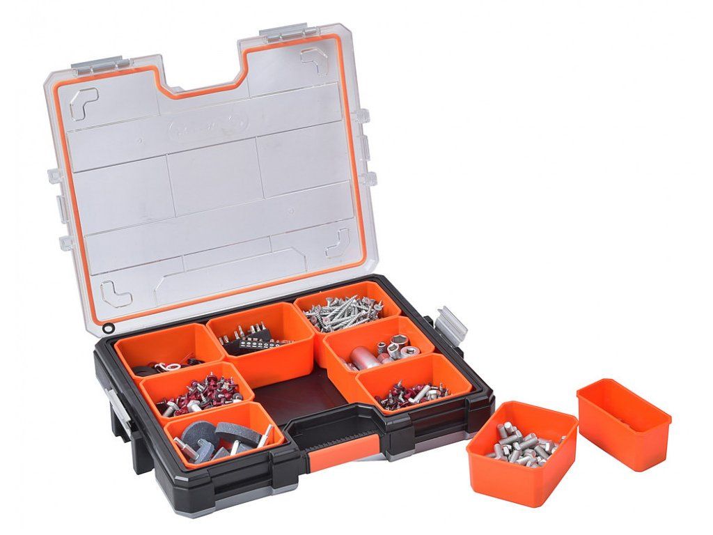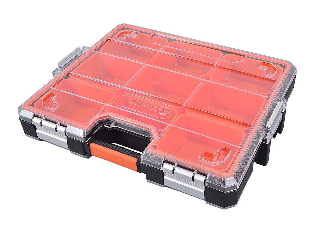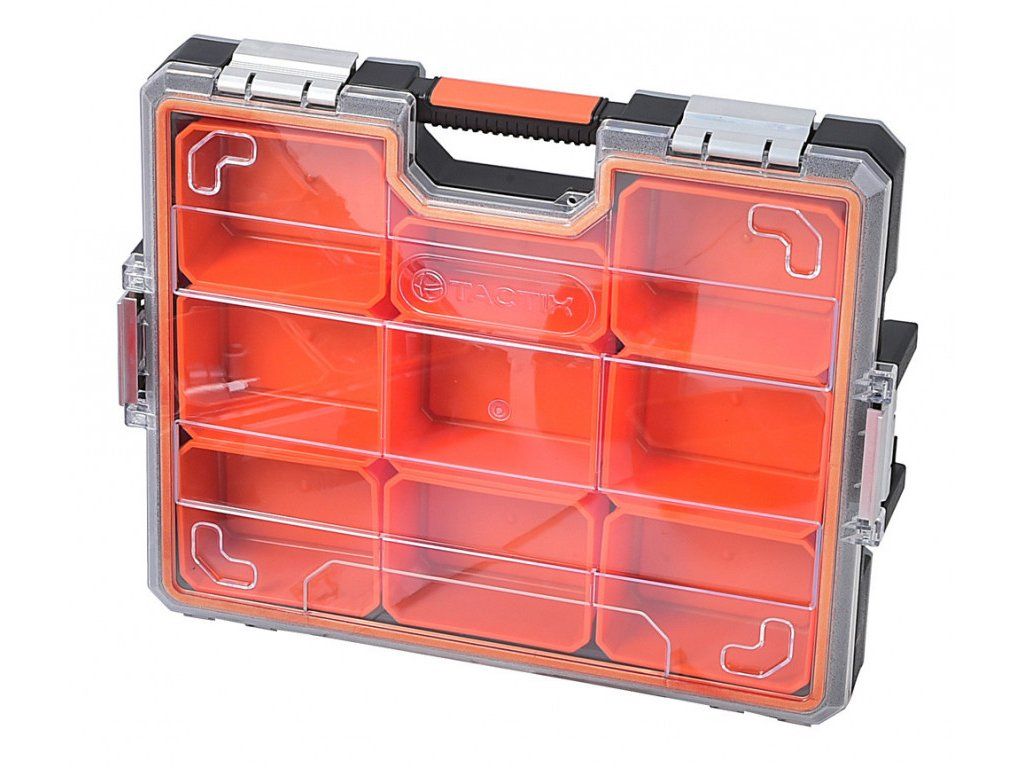 Vodotěsný organizér o rozměrech: 455 x 375 x 80 mm, vyrobeno z plastu, 9 vyndavacích boxíků, Tactix.