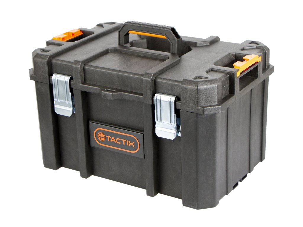 Odolný plastový kufr s vodotěsným provedením chrání obsah před vlhkostí, prachem a nečistotami. Je ideální pro bezpečné uložení nářadí a drobného materiálu.