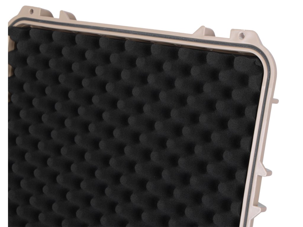 Vodotěsný plastový kufr s předřezanou pěnovou výplní. IP65, pískové provedení, rozměry: 544 x 436 x 216 mm.