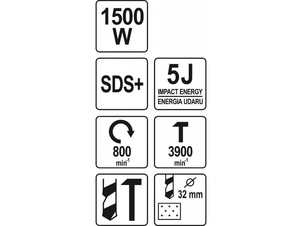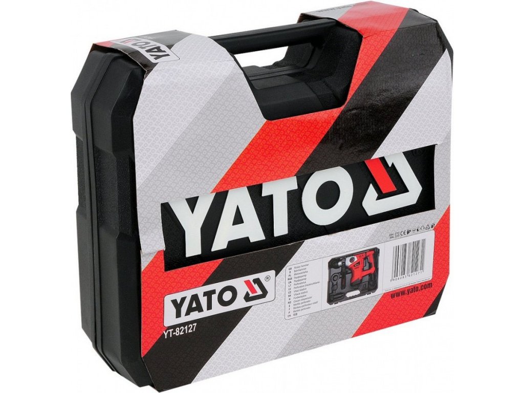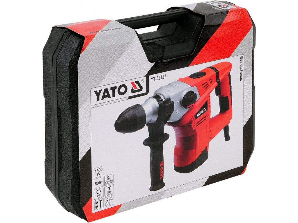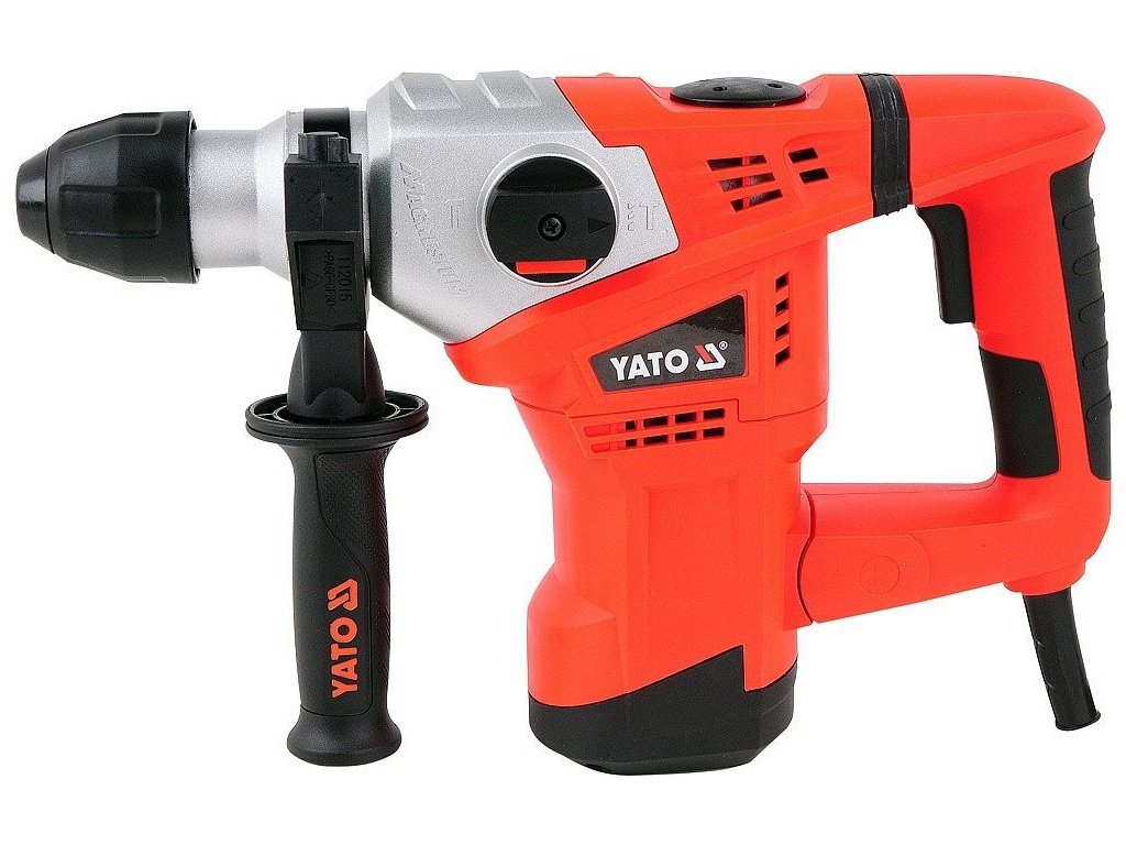 Vrtací kladivo o výkonu 1500 W, značka YATO, 800 otáček/min., 3900 úderů/min., energie nárazu 5 J, plynulá regulace otáček, ochrana proti přetížení.