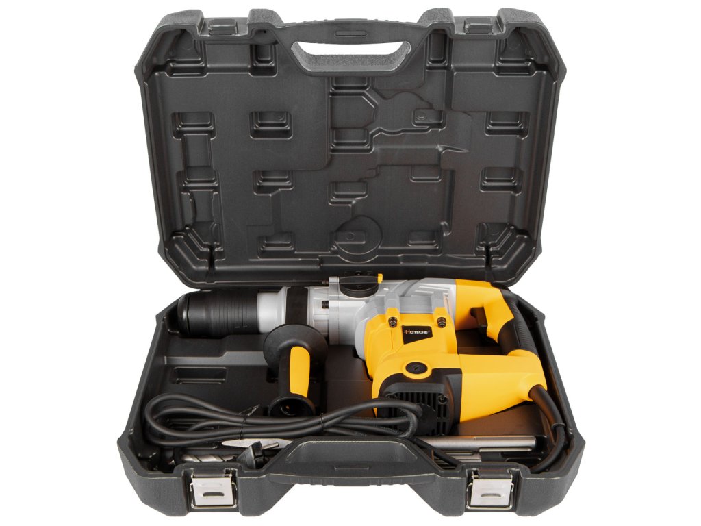 - Výkonný motor 1500 W má dostatek síly pro různé typy demoličních prací, ať už se jedná o betonové zdi, podlahy nebo jiné stavební materiály.
