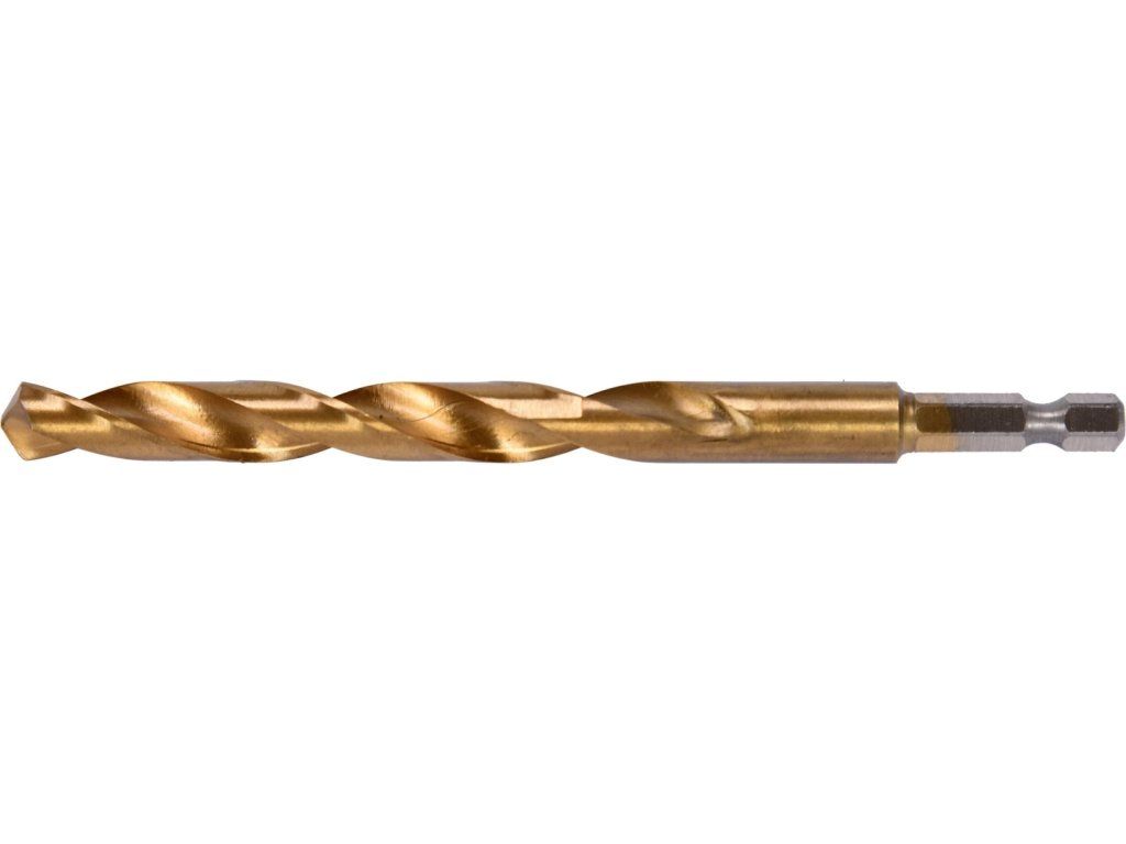 HSS vrták, na kov, ø 10 mm, délka 133mm, titanový povrch, uchycení HEX 1/4".