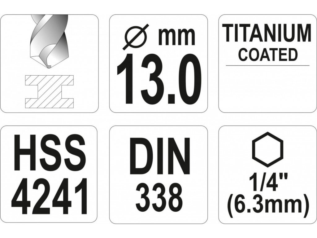Vrták na kov 13mm TITAN HEX 1/4", délka 151mm - YT-44776