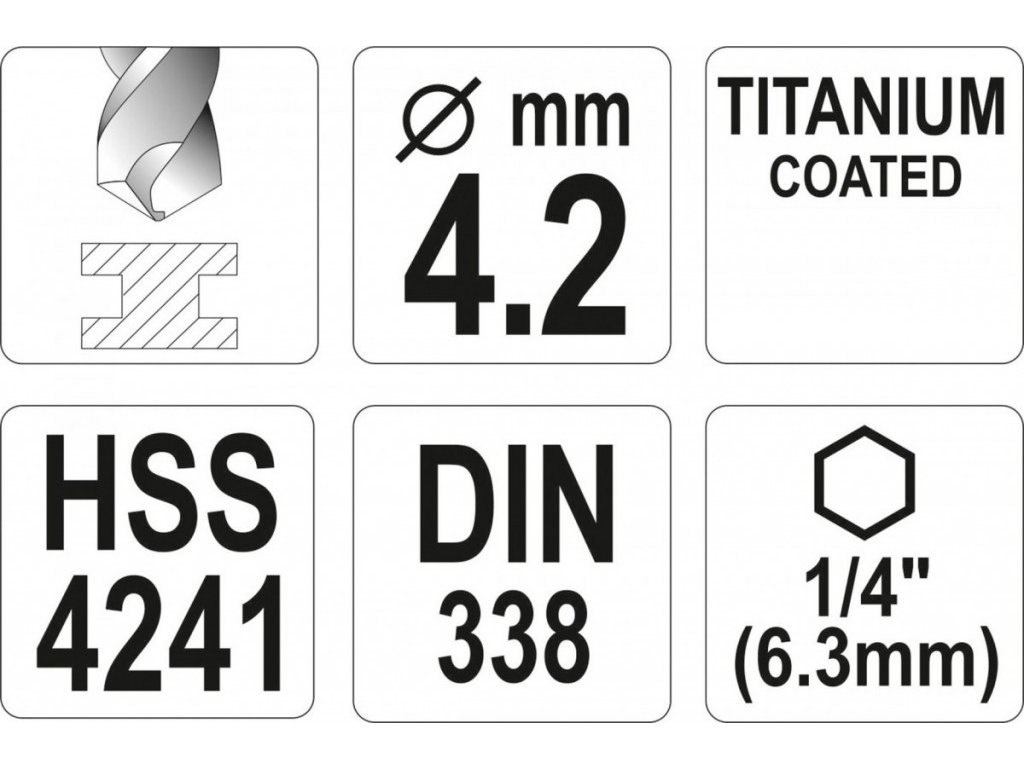 Vrták na kov 4,2mm TITAN HEX 1/4", délka 95mm - YT-44758