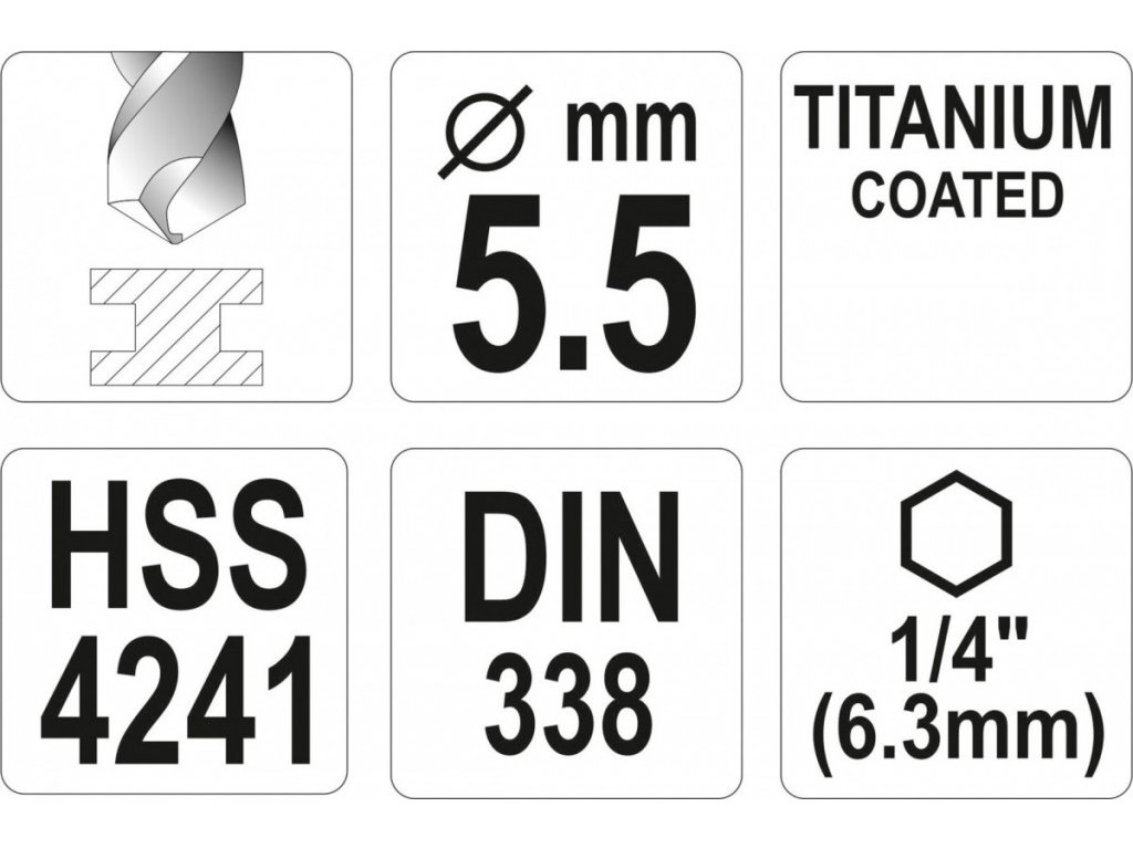 Vrták na kov 5,5mm TITAN HEX 1/4", délka 113mm - YT-44763