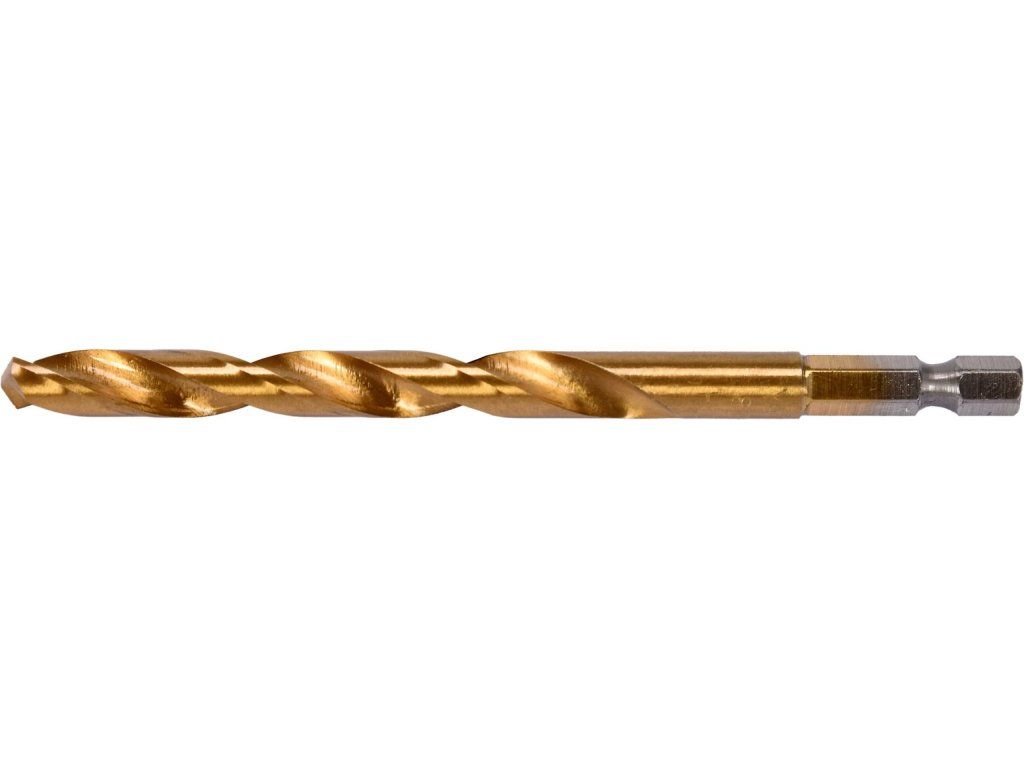 HSS vrták s titanovým povlakem s uchycením HEX 1/4" pro pevné uchycení. Délka 117mm.