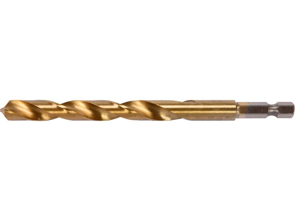HSS vrták s titanovým povlakem s uchycením HEX 1/4" pro pevné uchycení. Délka 125mm.