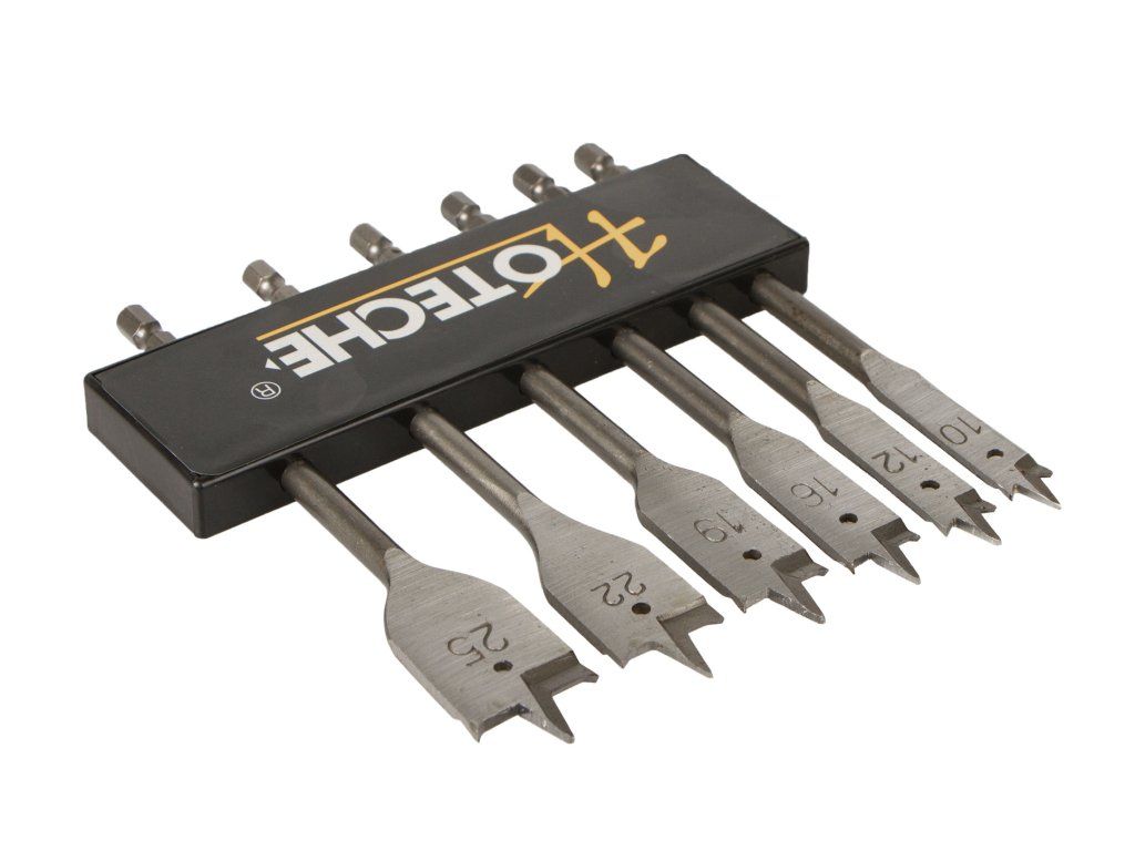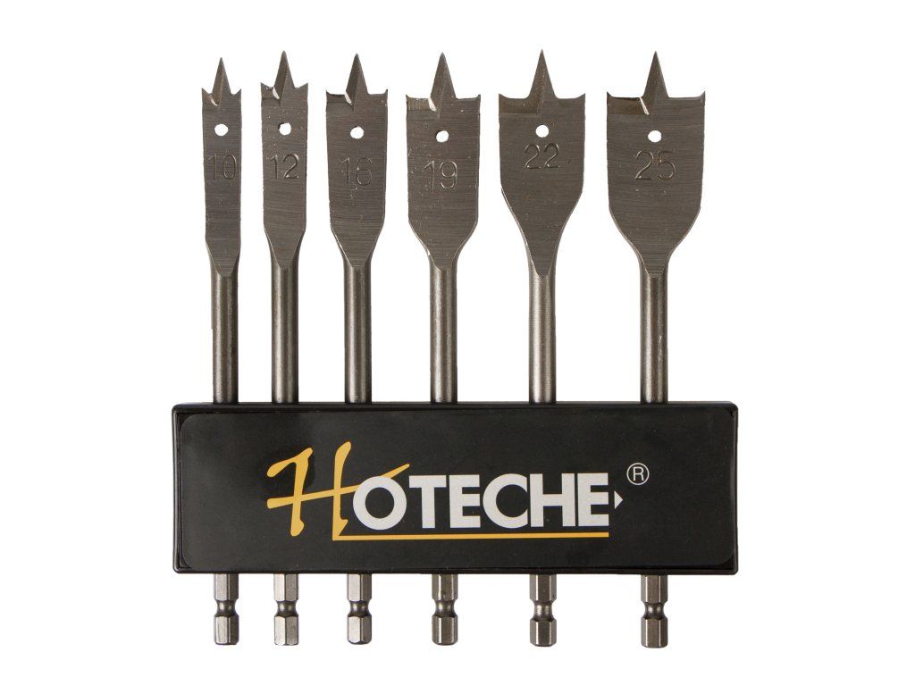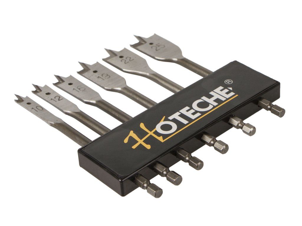 Sada plochých vrtáku do dřeva od značky Hoteche v praktickém držáku.