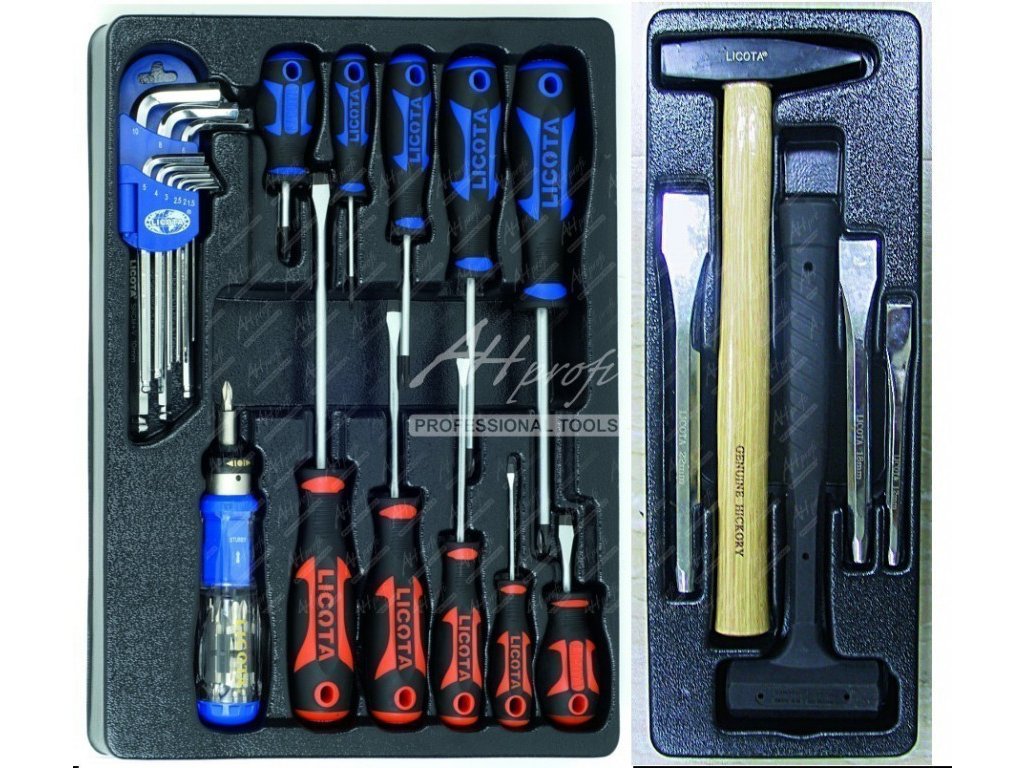Vybavení dílenského vozíku PROFI - 163 ks nářadí LICOTA - sada002