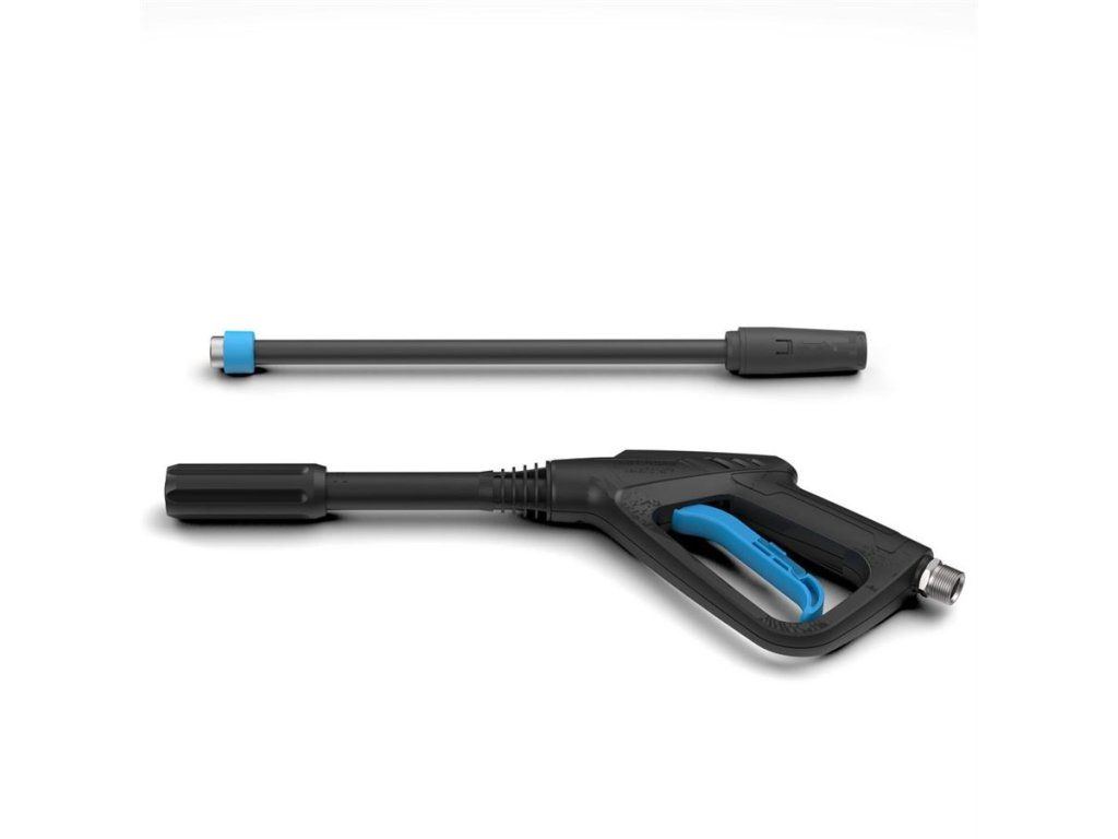 Příslušenství: nastavitelná VARIO tryska, rotační tryska na úporné nečistoty, mycí kartáče plochý a rotační, hadicová přípojka vč. vodního filtru, 6 m tlaková hadice.