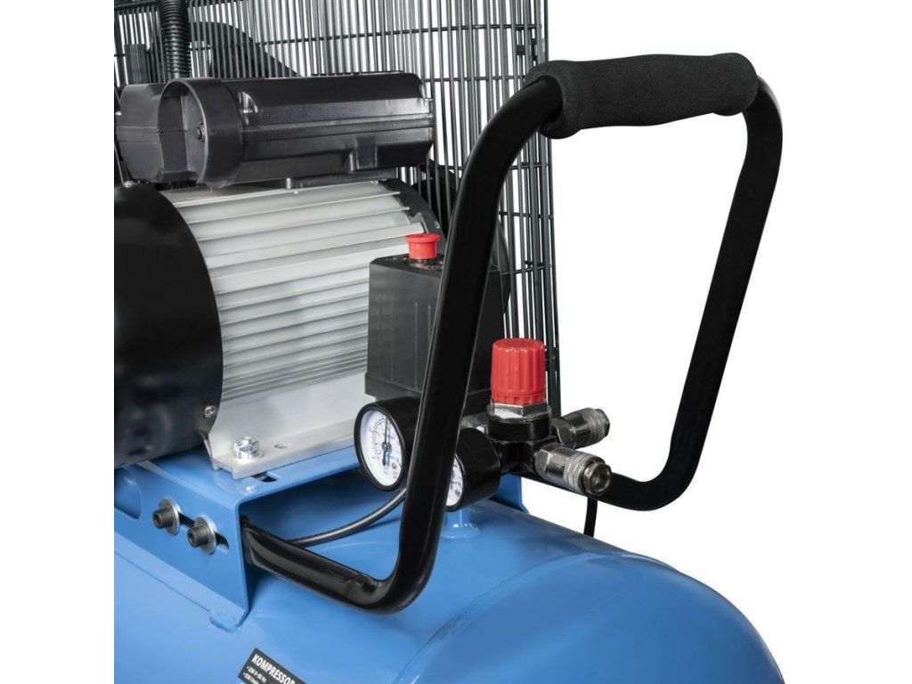 - Tlaková nádoba: 100 l, vypouštěcí ventil kondenzátu, podstavec s 2 antivibračními patkami, transportní rukojeť, pohodlná manipulace díky kombinaci 2 vodicích a 2 pojezdových celoplastových kol.
