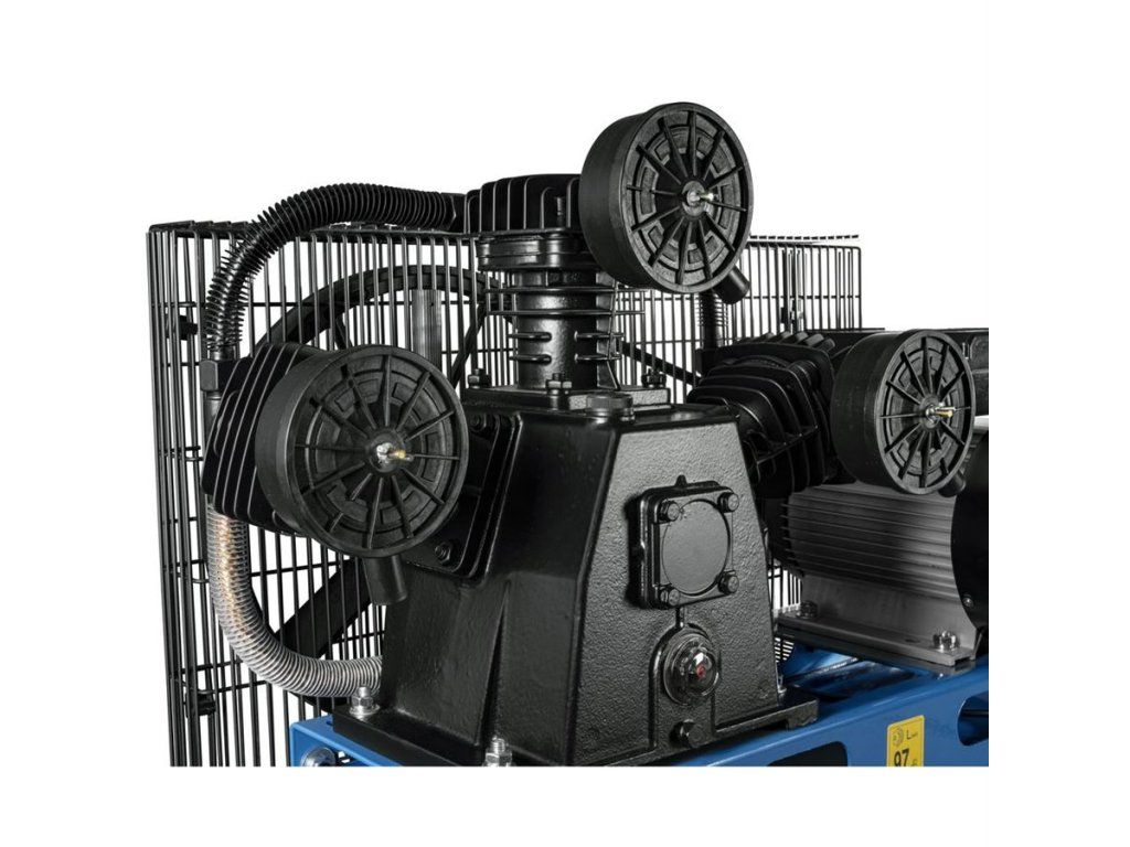Kompresor střední výkonné třídy, tlaková nádoba 100 l, elektromotor 2,2 kW, tříválcový agregát s olejovým mazáním. Rozměr kompresoru 1.070 x 380 x 840 mm, váha 79,2 kg.