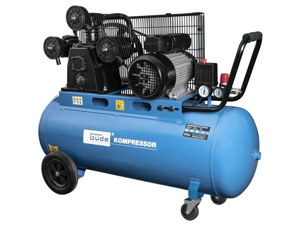 Výkonný olejový kompresor se 100 l tlakovou nádobou, určený k výrobě stlačeného vzduchu v domácích i servisních nebo řemeslnických dílnách, montážních provozech apod.