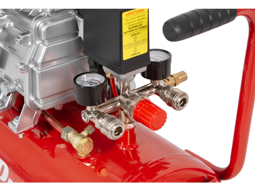 Olejový kompresor o objemu 24 l, max. tlak 8 barů, 2.800 ot./minutu. Jednoválcový, výkon motoru 1,5 kW. Rozměr 575 x 255 x 620 mm, váha 22 kg.