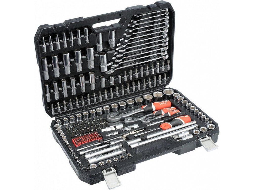 Goly 1/2", 3/8", 1/4" + 216 ks příslušenství (nástavců, prodlužovacích nástavců, ráčny s plastovou rukojetí, kloubové nástavce očkoploché klíče a další).