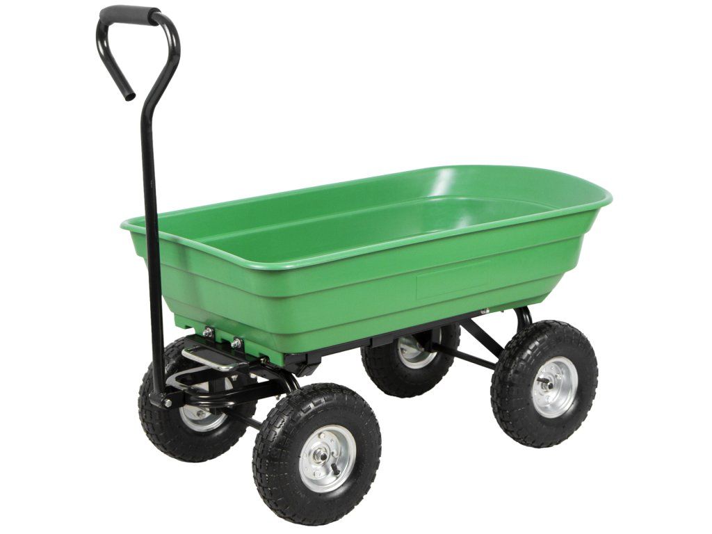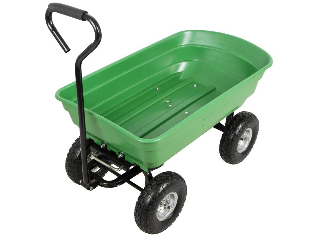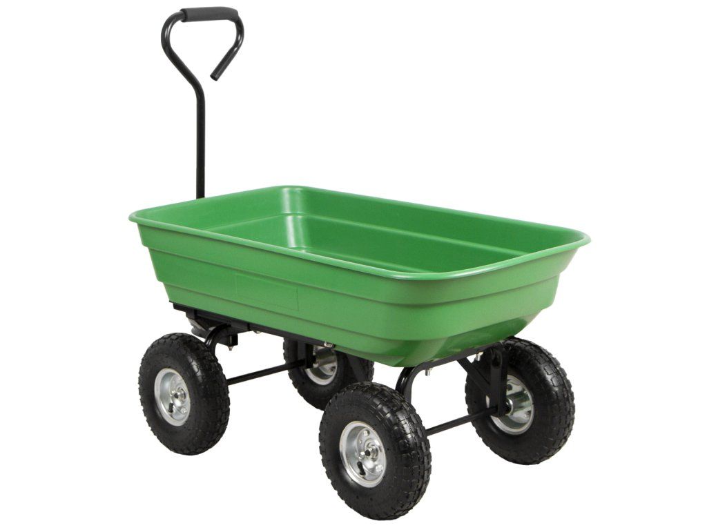 Zahradní vozík vhodný pro přepravu dřeva, trávy, sena nebo zeminy apod. na zahradách nebo okolí domu.