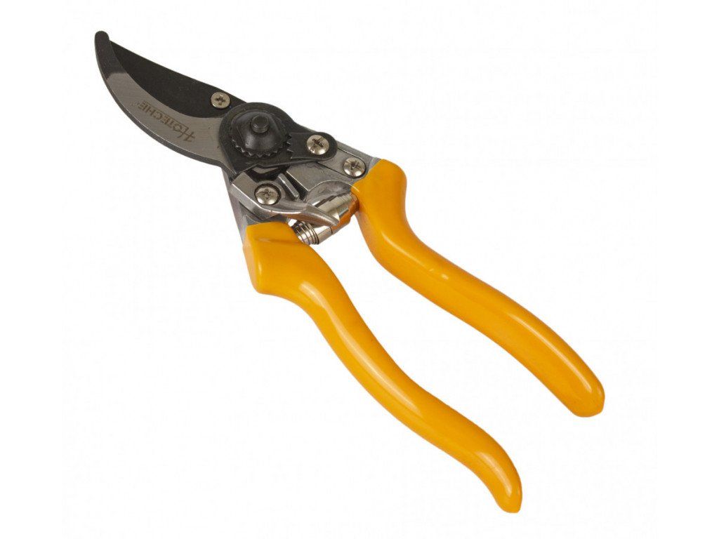 Zahradnické nůžky o délce 200 mm, šikmý střih. Hliníkové tělo s pogumovanou rukojetí.