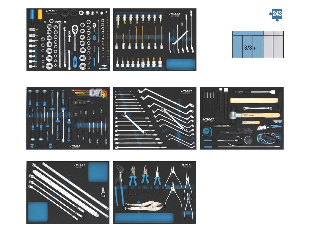Základní sada nářadí pro VW AUDI od kvalitního německého výrobce HAZET, obsahuje celkem 242 kusů nářadí v 7 pěnových modulech.