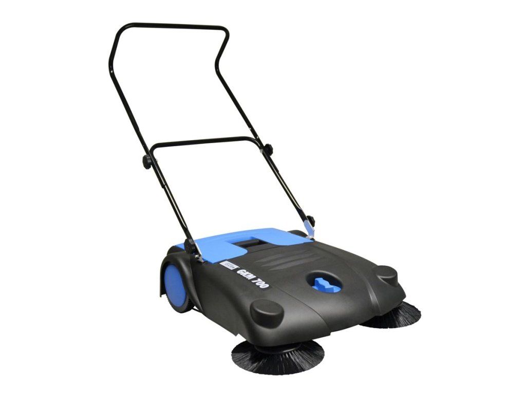 Ruční zametací stroj, určený k zametání hal, chodeb, teras apod. 2 podávací rotační kartáče, 2 sběrné válcové kartáče. Manuální posuv stroje, šířka záběru 700 mm. Sběrná nádoba 14,5 l. Váha 9,07 kg.