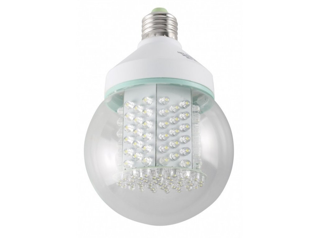 Úsporná žárovka obsahující 150 LED diod, žluté světlo, spotřeba 8,5W, nejpoužívanější patice - E27.