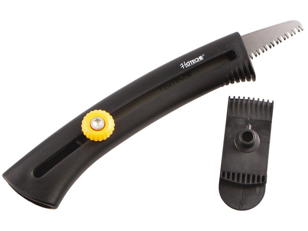 Ruční zasouvací/vysouvací pilka značky Hoteche, která je určena na zahrady, chaty, chalupy, ale i např. pro kempování apod.