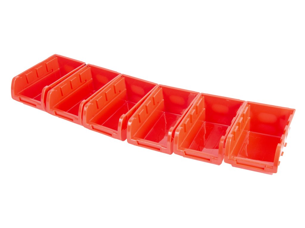 Sada obsahuje 6 ks plastových boxů s vnitřním rozměrem 14 x 8,2 x 7 cm. Celková šířka systému ve složeném stavu je 96,6 cm.