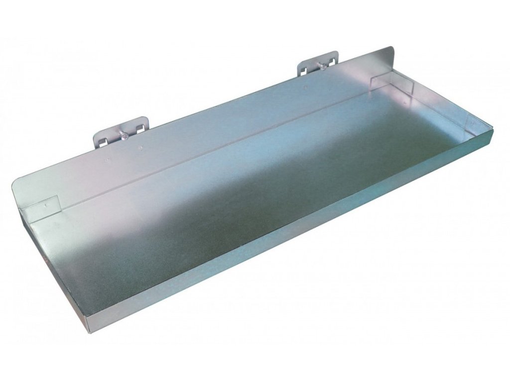Odkládací police, kompatibilní s dílenskými závěsnými systémy, které využívají čtvercové děrování 10 mm2