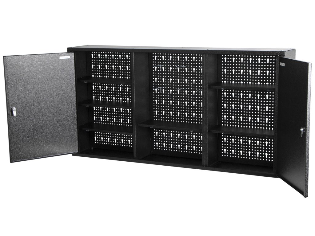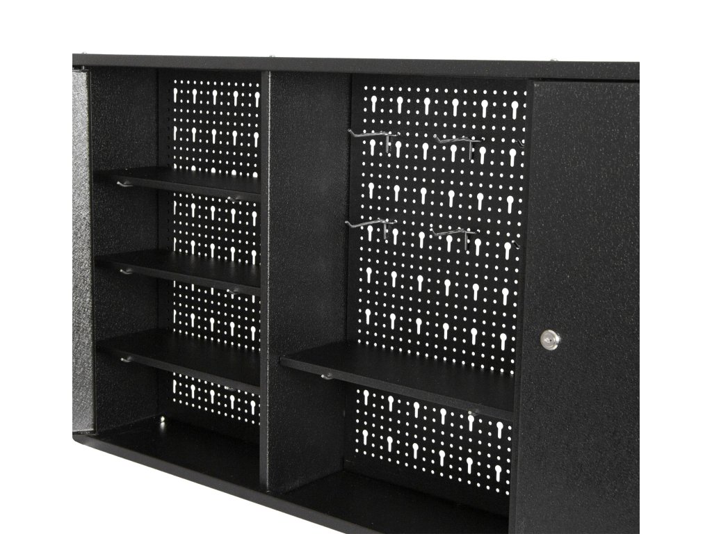 Rozměry: 1200 x 200 x 605 mm, uzamykatelná, dvě dvířka, zadní děrovaná deska.