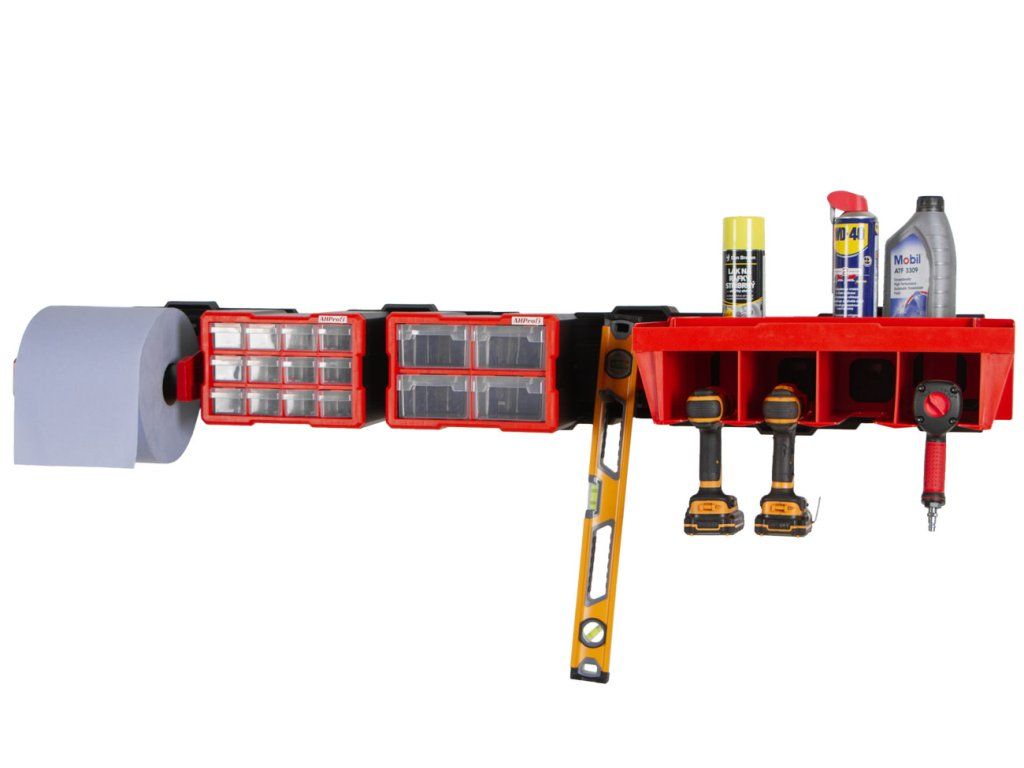 Tato sada poskytuje prostor pro nářadí i drobný montážní materiál a zlepšuje přístupnost i organizaci.
