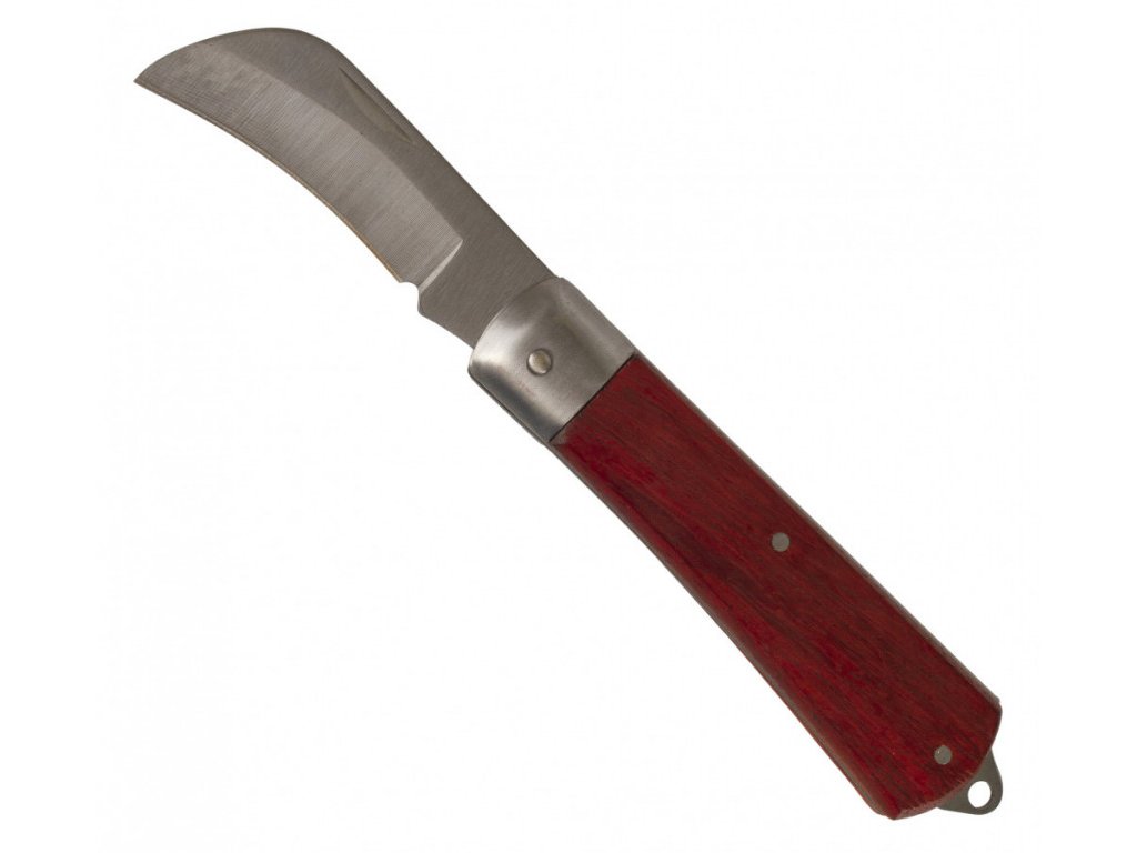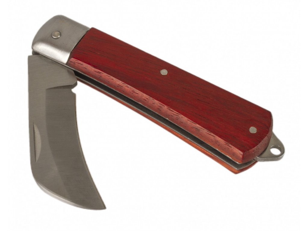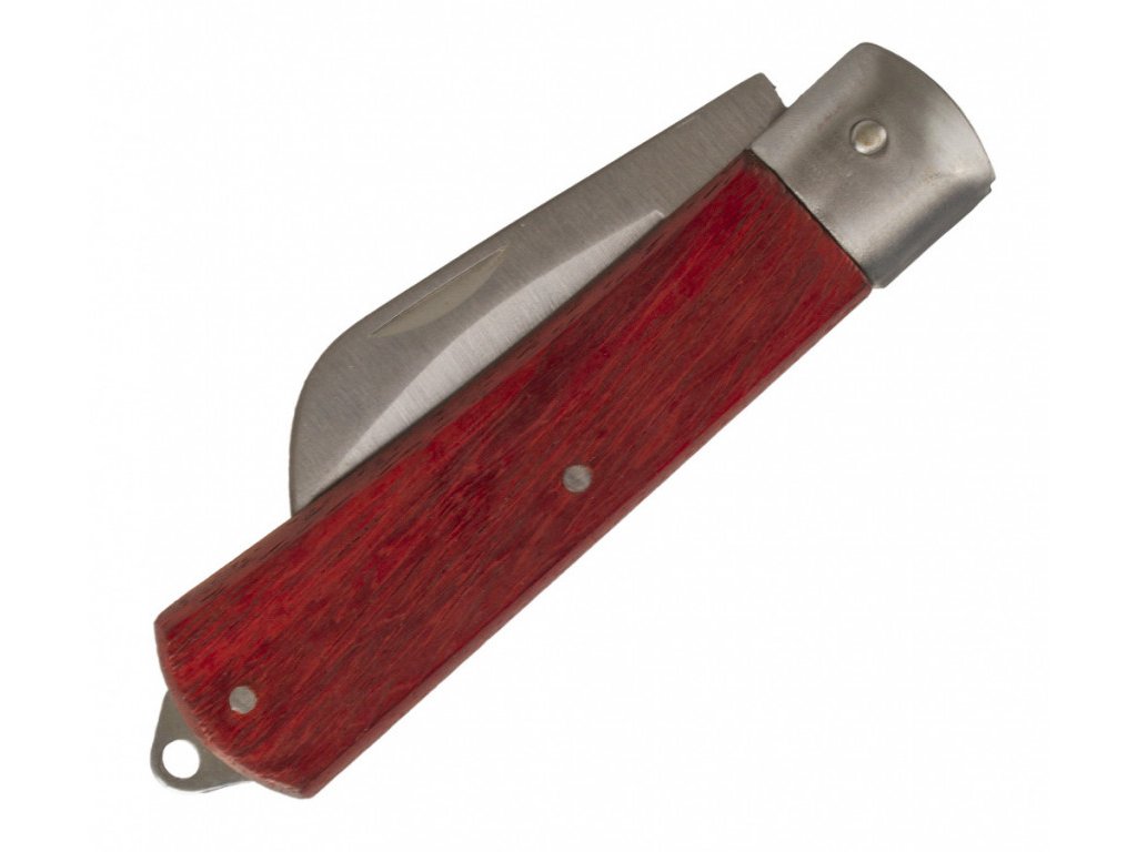 Zavírací nůž se dřevěnou rukojetí. Hodí se například k odizolování kabelů apod.
