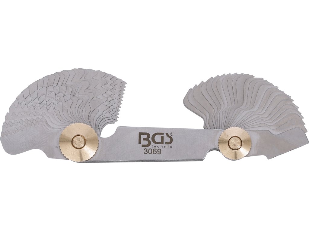 Závitová měrka, 52 lístků pro měření metrických a Whitworth závitů.