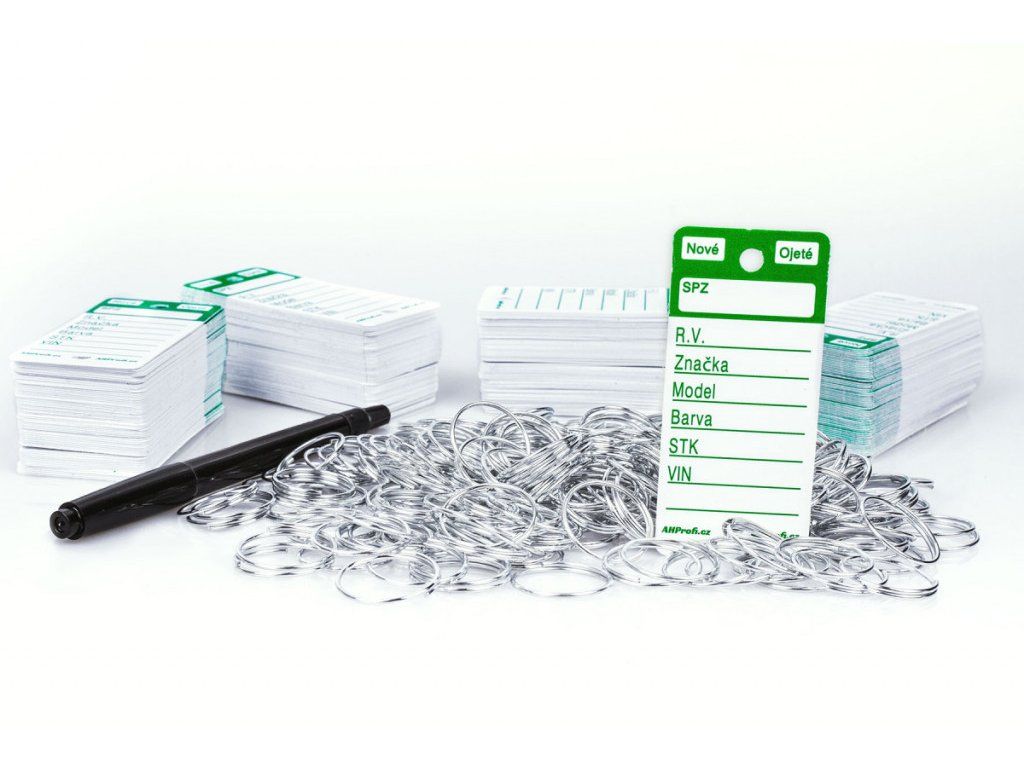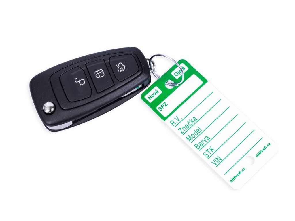 Bílé plastové visačky na klíče s černým potiskem jsou velkou pomůckou převážně pro autobazary, případně autosalony pro snadnou identifikaci klíčů. Jednoduše pak poznáte, kterému autu klíček patří díky vyplněným polím na jmenovce. Permanentním fixem, který je přiložen jako dárek, napíšete na cedulku na klíče SPZ, rok výroby, značku, model a barvu vozu. Datum STK a VIN, zaškrtnete zda se jedná o nové či ojeté vozidlo. Použitím permanentního fixu nemusíte řešit smývání, ušpiněné prsty apod. Na klíče připevníte rozlišovač za pomoci přiloženého kroužku, což může být o trochu složitější než instalace u modelů Easy-ON, nebo Econo ID.