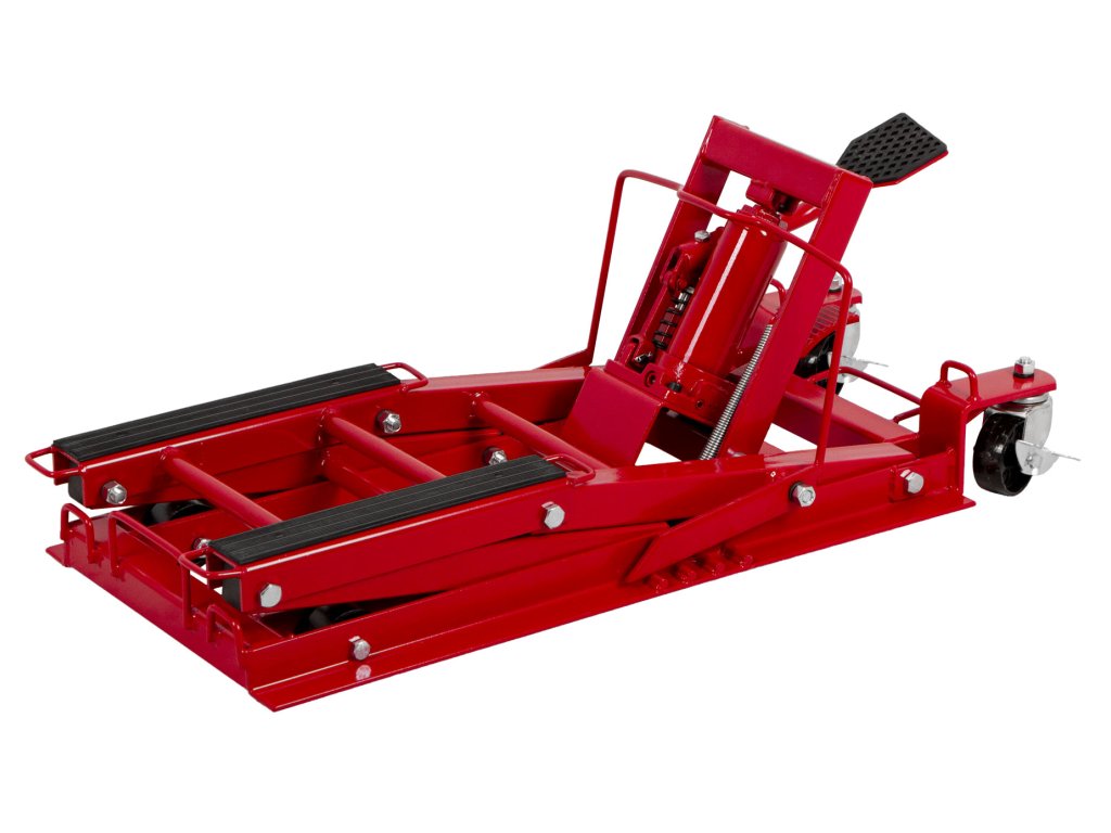 Hydraulický zvedák motocyklů s pedálovým ovládáním a nosností až 680 kg.